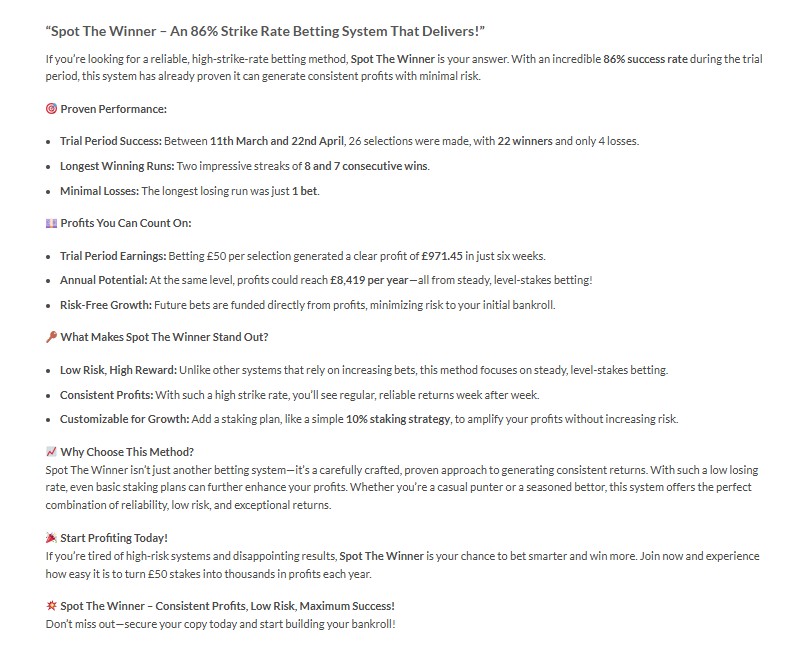 Spot The Winner System
